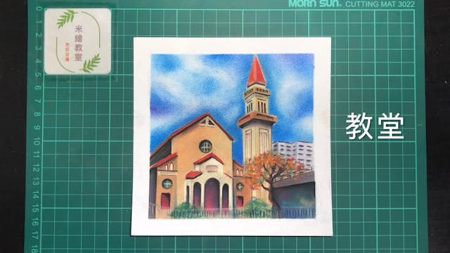 這九龍的一道美麗風景,每次坐車經過時都會看到。教堂名叫聖德肋撒堂,位於太子窩打老道附近,建築充滿異國情調,據說是一種仿羅馬式建築,這次我們通過形板,將這個古雅建築還原紙上,用粉彩來增添它的色彩。